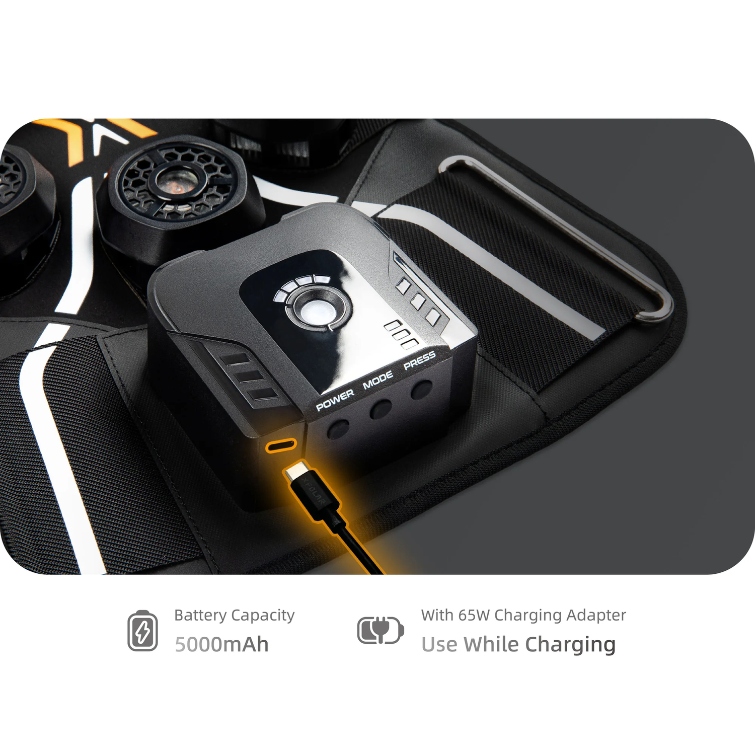 5000mAh battery for long-lasting use: 2.5 hours of heat, 1 hour of contrast, and 45 minutes of cold therapy.Use our official 65W adapter for quick charging and simultaneous use while charging.